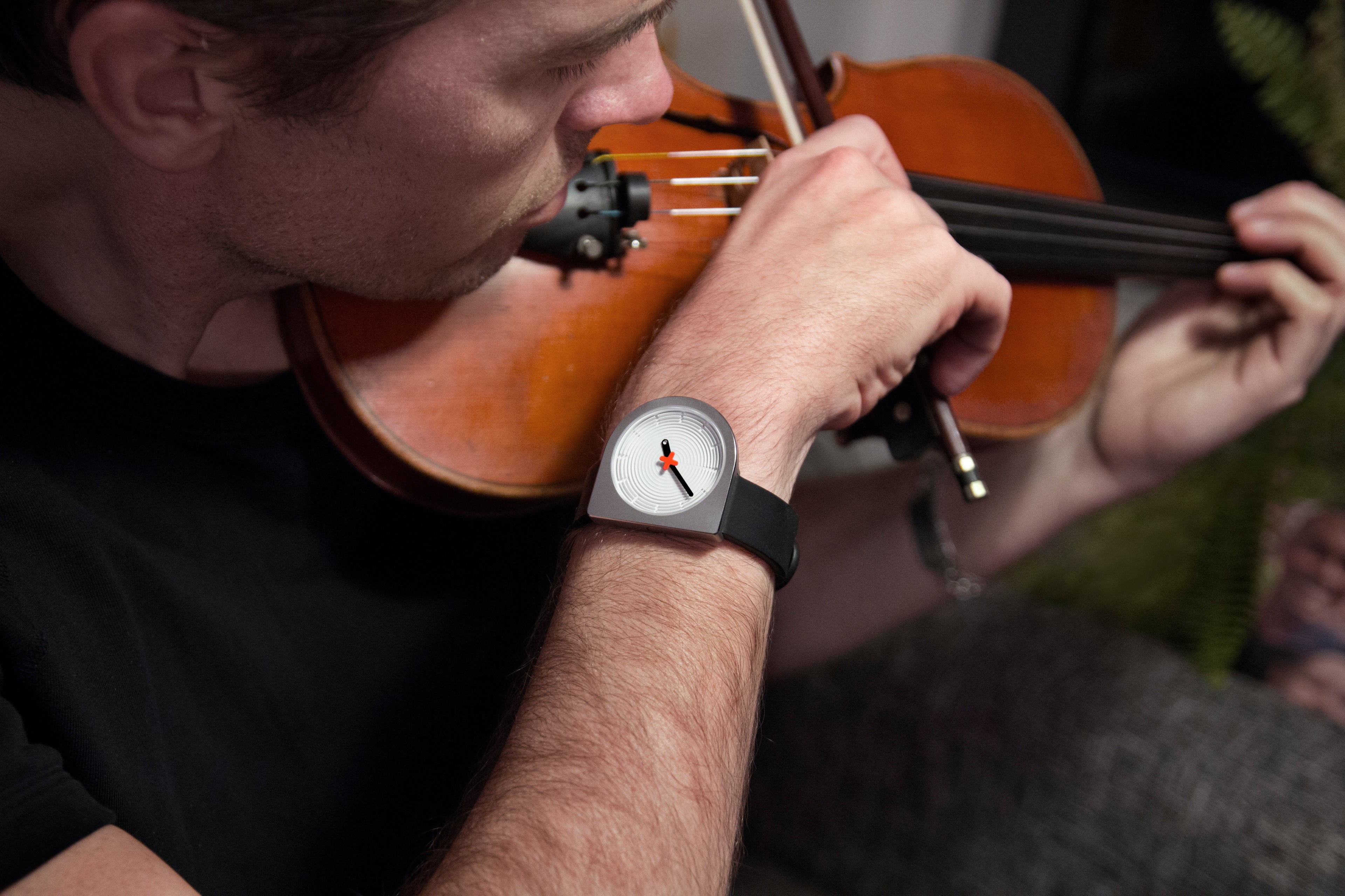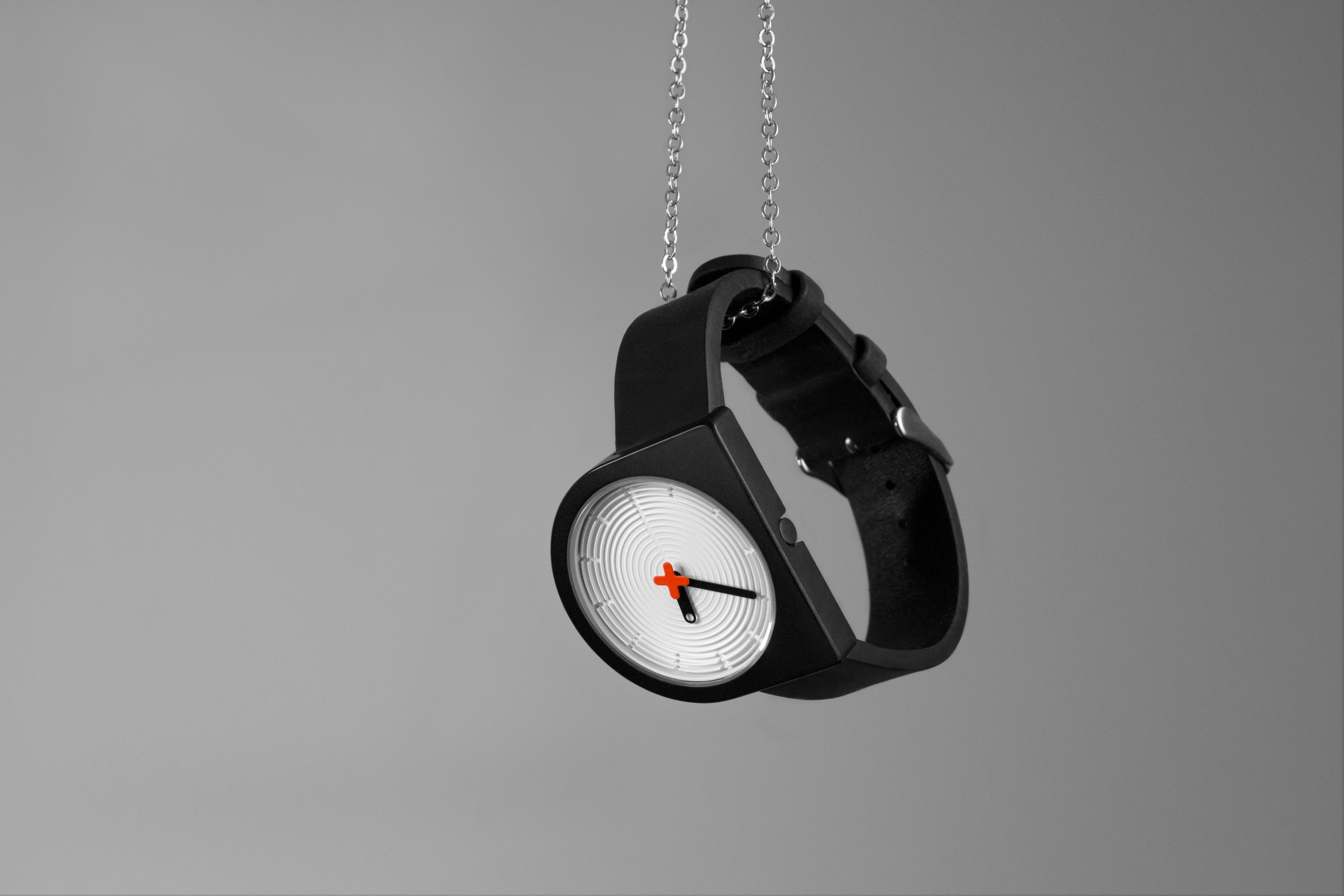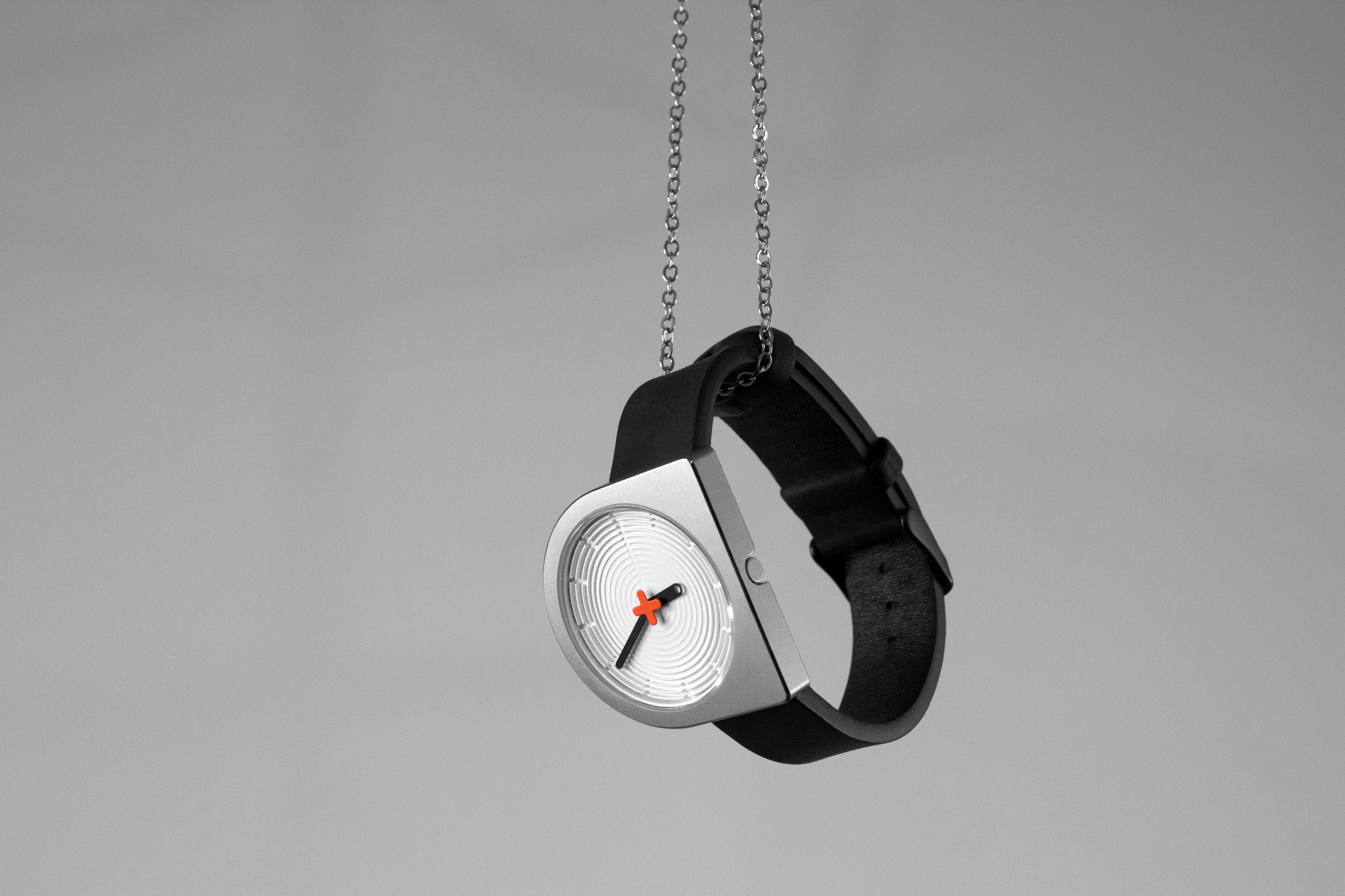 It began with the compulsion to integrate the crown flush with the stainless steel case no matter its rotation, which resulted in a flat right edge that provided an excellent opportunity to also integrate the lugs such that the left edge of the strap aligns perfectly with the center of the 3D "zen garden" dial that uses shadow and light to mark the hours, undisturbed by a vulgar logo as that has been elevated to the status of seconds hand, completing the pure result of an intense negotiation between circular and squared geometries.